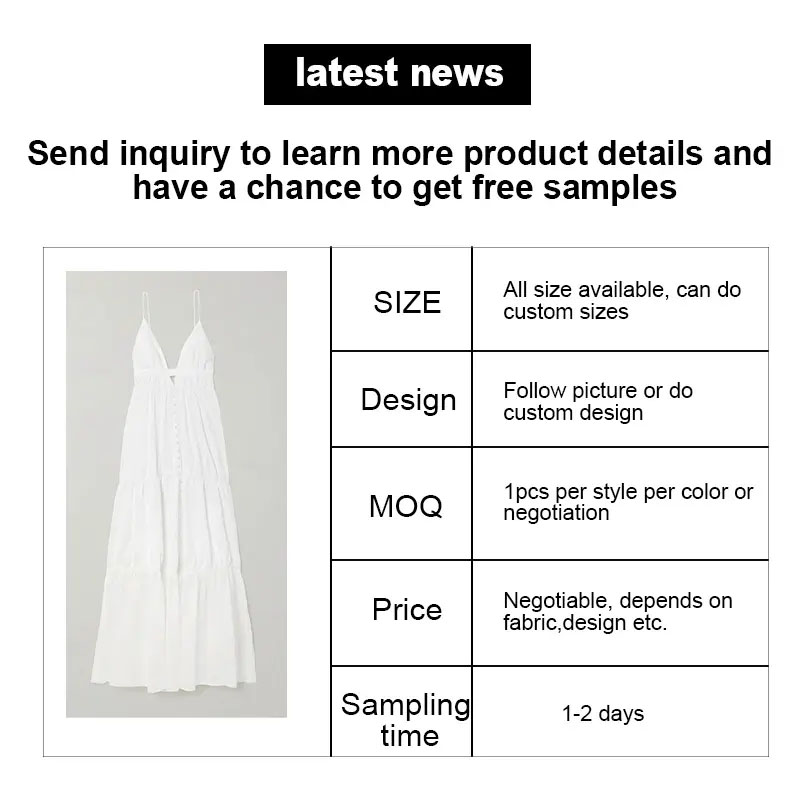 Jätkusuutlik ja hingav disain: see elegantne kihiline V-kaelusega seljata kleit on valmistatud 100% linasest, tagades hingava ja jätkusuutliku rõiva, mis sobib suurepäraselt igapäevaseks eluks. Antistaatilised ja kortsuvastased funktsioonid muudavad selle iga naise jaoks praktiliseks valikuks. Koostamise võimalused: saadaval erinevates kohandatavates värvides ja suuruses, seda kleiti saab kohandada vastavalt teie ainulaadsele stiilile ja eelistustele. Kõrge kvaliteediga materjalid: Kangakaaluga 100 grammi kangas, see kleit on valmistatud KORRALDUSE PÄEVA PÄEVA PÄEVA PÄEVA PÄEVA PÄEVA PÄEVA PÄEVA TELLIMETE KOHTUMIDE KOHTUMISEKS. Proovige ja vaadake kleiti isiklikult enne suurema tellimuse.comPETIVITIVi hinnakujunduse: otsese tehase ja kaubandusettevõttena pakume konkurentsivõimelisi hinnakujundus- ja originaalseadmete tootjate teenuseid, muutes selle atraktiivseks võimaluseks ettevõtetele ja üksikisikutele, kes soovivad hulgiliselt osta.