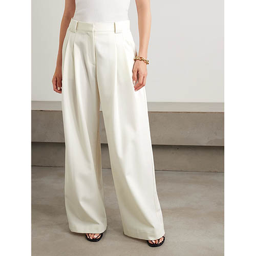 🌸 Tutvuge oma uue garderoobikangelasega: kreemjas varrukateta bleiserivest ja laia säärega pükste komplekt