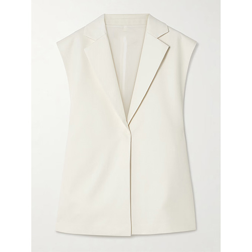 Võtmekujundus: varrukateta reväärivest + kõrge vöökohaga laia säärega püksid, figuuri meelitav istuvus